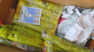 Dann ist es doch ein ganzer Umzugskarton geworden, der den Weg ins neue Zuhause antritt. Die Buddhas aus Indien, Nepal, Thailand und Kambodscha, die Amulette aus Thailand, Laos und das Faltsutra ausTaiwan, die heiligen Erden aus Tibet, die Amulette aus Nepal, dieLongligfe-Pills aus Ladakh, die legendären Lady Gaga-Muscheln aus Patagonien, die kette aus Peru und dazu noch rund 150 Meter Gebetsfahnen plus einer langen Bambusstange mit Fahne – sollte also passen…